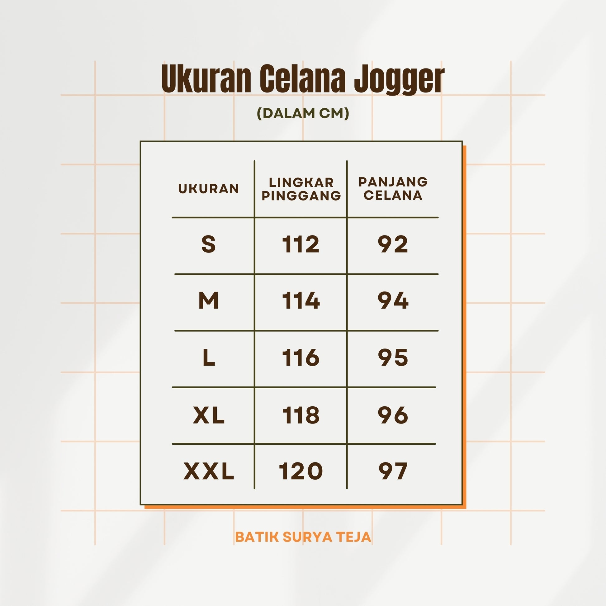 - XXL: Lingkar Pinggang 120 cm, Panjang Celana 97 cm