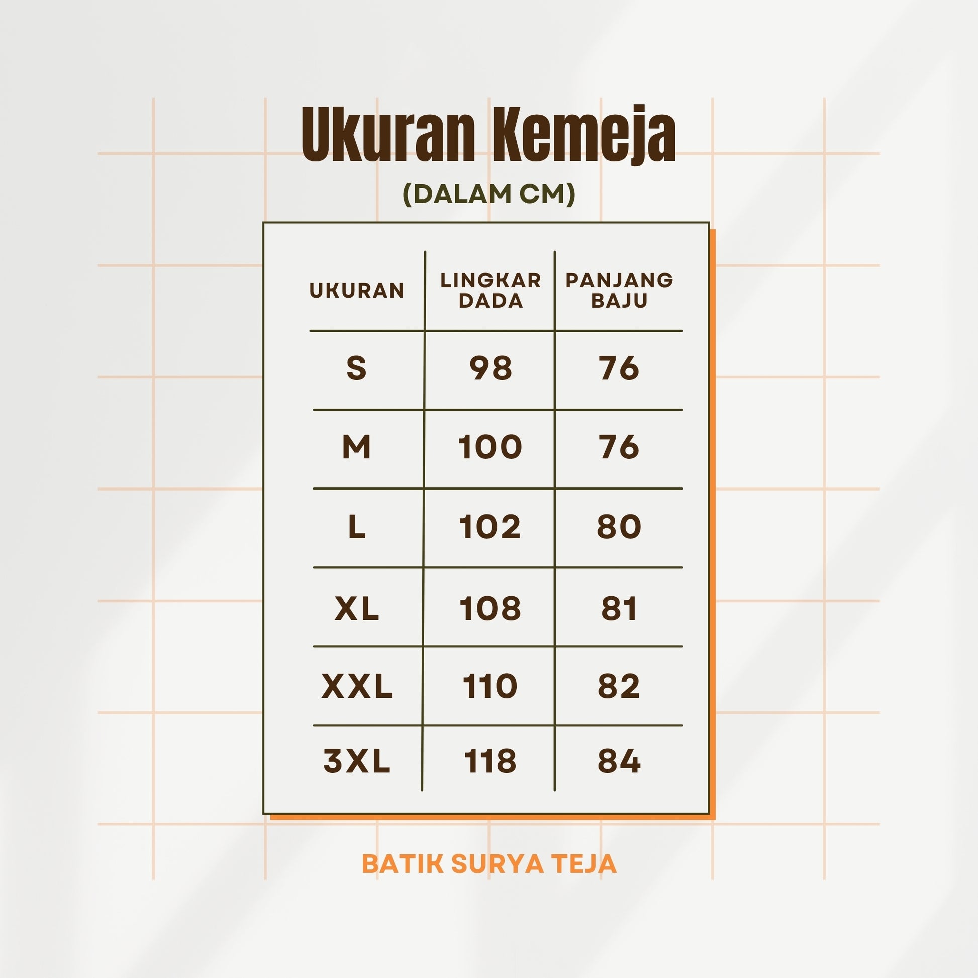 - S : Lingkar Dada 98 cm, Panjang Baju 76 cm